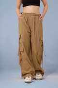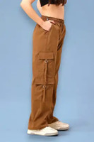These are high-waist cargo pants that provide a secure and comfortable fit. This design amps up your fashion game while also offering suitable coverage. Additionally, this design enhances the versatility of these cargos. You can pair them with various kinds of upper wear options, such as T-shirts, crop tops, shirts, and more.
