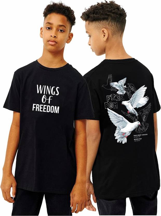 SQF Boys Printed Polyester Regular T Shirt (Black, Pack of 1)