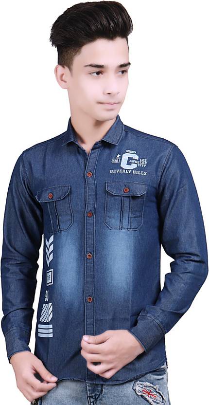 This stylish men’s demin print shirt is perfect for any occasion. The shirt has a classic collar design and a button down front. This shirt comes in a variety of colors and styles.