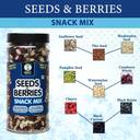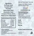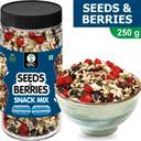 The mix contains cranberries, cherries, black currants, and black raisins for a delightful taste experience. These dried berries add natural sweetness to balance the savoury notes of the seeds. The berries provide bursts of flavour that complement the milder-tasting seeds in the mix. Their slightly chewy texture contrasts nicely with the crunch of the seeds. The natural fruity aroma enhances the overall sensory appeal of this snack mix.