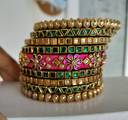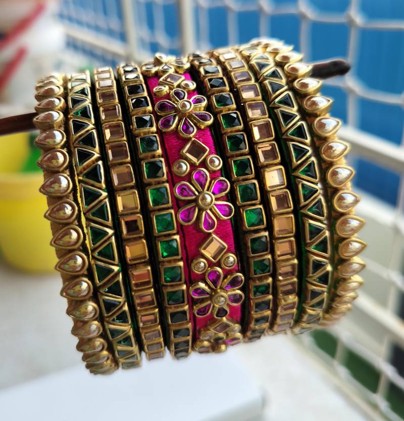 Total 9 bangles Attractive Bangle Set For Women Stylish In Latest Design Traditional Thread Bangle Best Quality Acrylic Bangles long durable. This bangle set can be perfectly matched with Salwar suit,lehanga and Saree. There may slight difference in colour due to photography and brightness adjustments in monitor screen. please check your size before placing an order.