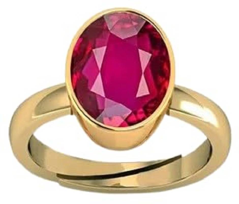 SREYADE 7.25 Ratti 6.50 Carat Natural Ruby Stone Manik Ring Brass Ruby Gold Plated Ring
