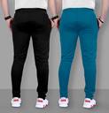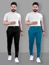 Pack of 2 Men Solid Black, Blue Track Pants