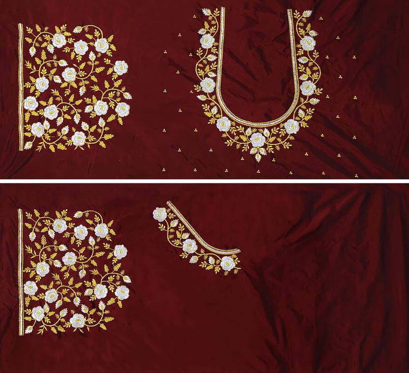Unstitched Art Silk Blouse Material Embroidered