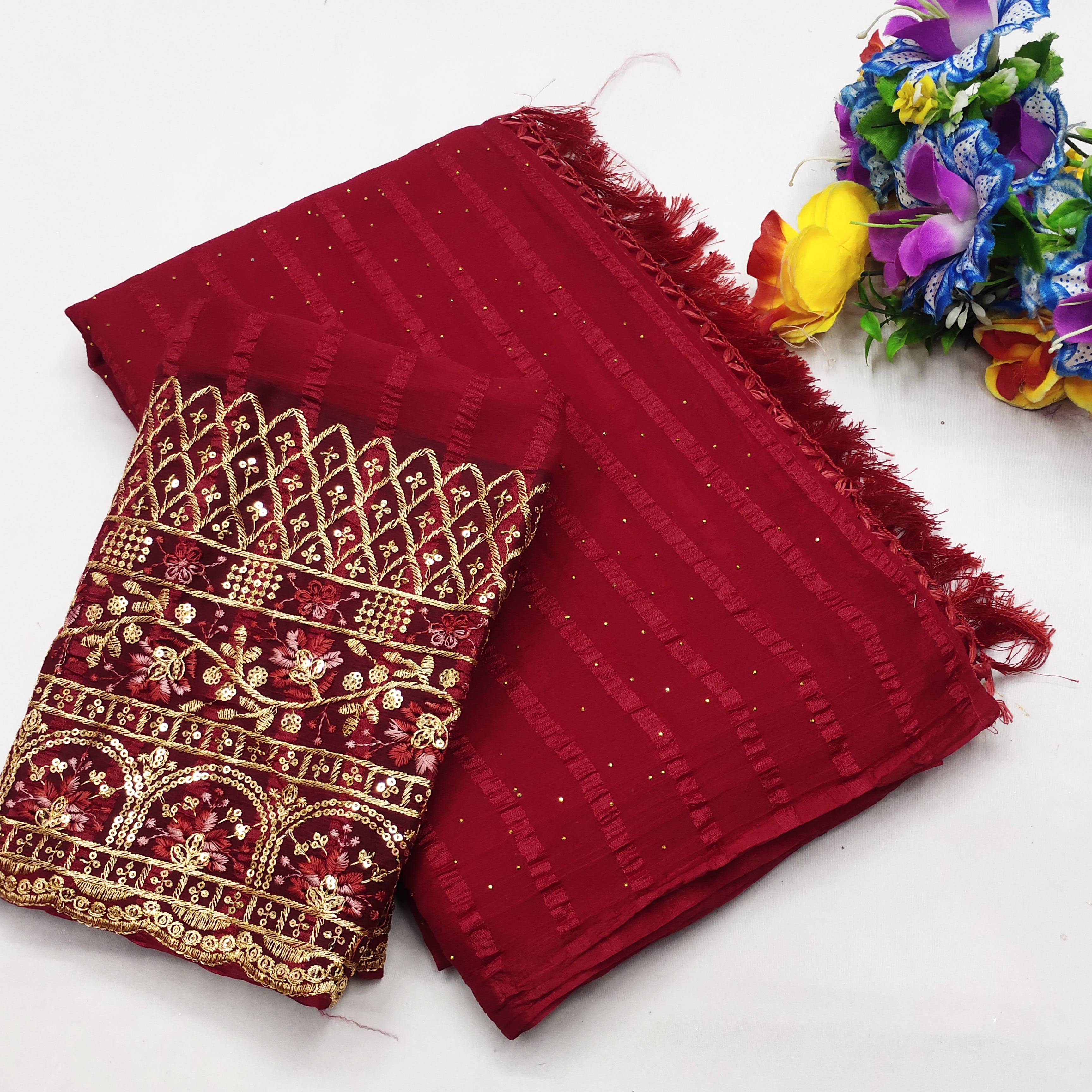 OMINI FASHION Unstitched Art Silk Blouse Material Embroidered