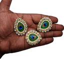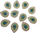 Exquisite Applique with Artificial Peacock Feather, Artificial Stone and Artificial White Pearl, Patches for Cloth, Accessories, Home décor, and Various Craft Projects Decoration (D085) (12 Pieces)