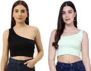 BRAND - PINOVO The model (height 5'7") is wearing a size M Sleeveless one shoulder rib-knit plain crop cami tank top. Fabric has some stretch is comfortable and soft to wear.Casual tank top easy to dress it up with variety of jeans, skirts, shorts and jeggings. Make a statement with this knit top featuring a one-shoulder neckline, sleeveless, and a crop straight closure at the hem. This casual yet chic top would look perfect paired with a denim mini skirt, round sunglasses, and ankle booties.