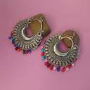 Boho Fancy Party Wear Oxidized Silver Tribal Brass Drops & Danglers, Chandbali Earring
