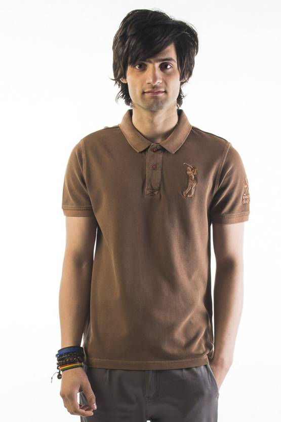 Men Solid Polo Neck Cotton Blend Brown T-Shirt