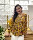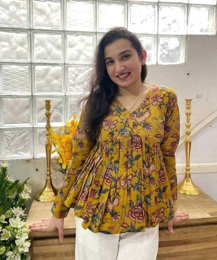 SRP Enterprises Women Floral Print Flared Kurta (Yellow)