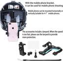 RECORD: This phone mount for motorcycle helmet is specially designed for riding. This device can help you install your mobile phone on your helmet and record your wonderful journey in a first-person view. ??EASY TO INSTALL: There are no complicated installation steps, and the design of the buckle and elastic band makes the installation very simple and convenient. The adapter on the chin mount and the phone holder can rotate the direction of the phone and adjust the shooting angle of the phone. ??COMPATIBILITY: The mobile phone clip can adjust the gripping range by rotating the knob on the side, which is compatible with most cell phones on the market. The high-quality elastic band design makes the helmet chin strap suitable for most full-face helmets. THE STRAP IS COMPATIBLE WITH All Smart Phones GoPro Hero 9/8/7/6/5/4/3+, DJI OSMO ACTION, SJCJAM, EKEN, YI & OTHER ACTION CAMERAS.