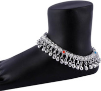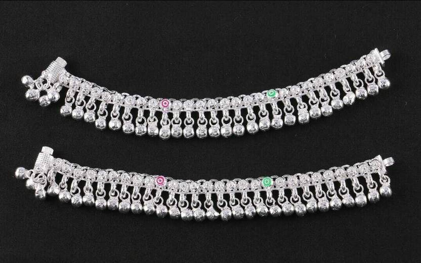 SRRE 7.5.inch Baby/girls Super/Sound (6.Year To 7.Years Childrens) Silver Anklet (Pack of 2)