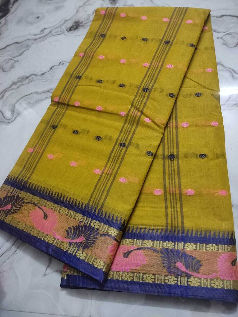 SSH Self Design Tant Pure Cotton Saree (Green)