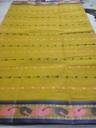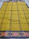 This is a traditional Bengali handloom cotton saree, known for its light and sheer nature, which makes it ideal for hot and humid weather. It features a combination of green and pink colors, with woven designs on the borders, which highlight the rich textile heritage of Bengal.