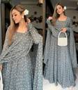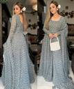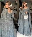 Floral Print Georgette Stitched Anarkali Gown (Grey)
