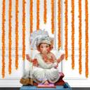 SSM Decorators Artificial Orange Marigold Garland for Door Toran Ganesh Chaturthi Decoration Fake Genda Phool Fluffy flowers for Diwali Decoration festive decor (Pack of 5)