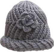 Black Flower Woven Stylish Round Woolen Fur Beanie Cap