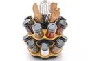 Unique Lotus Design: Adds a touch of elegance and charm to your kitchen decor., 16 Spice Shakers: Provides ample storage for a variety of spices, keeping them organized and easily accessible., High-Quality Construction: Made from durable materials for long-lasting use., Space-Saving: Compact design fits neatly on countertops or in cabinets, optimizing kitchen space., Versatile: Suitable for use in homes, restaurants, or any culinary setting., Easy to Clean: Shakers are detachable for effortless cleaning and maintenance., Functional and Stylish: Combines functionality with aesthetic appeal, making it a standout piece in any kitchen.