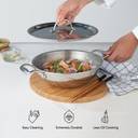 Stahl Artisan Triply Stainless Steel Kadhai 34 cm diameter with Lid 8 L capacity (Stainless Steel, Induction Bottom)