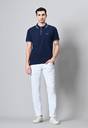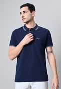 Men Solid Polo Neck Pure Cotton Dark Blue T-Shirt