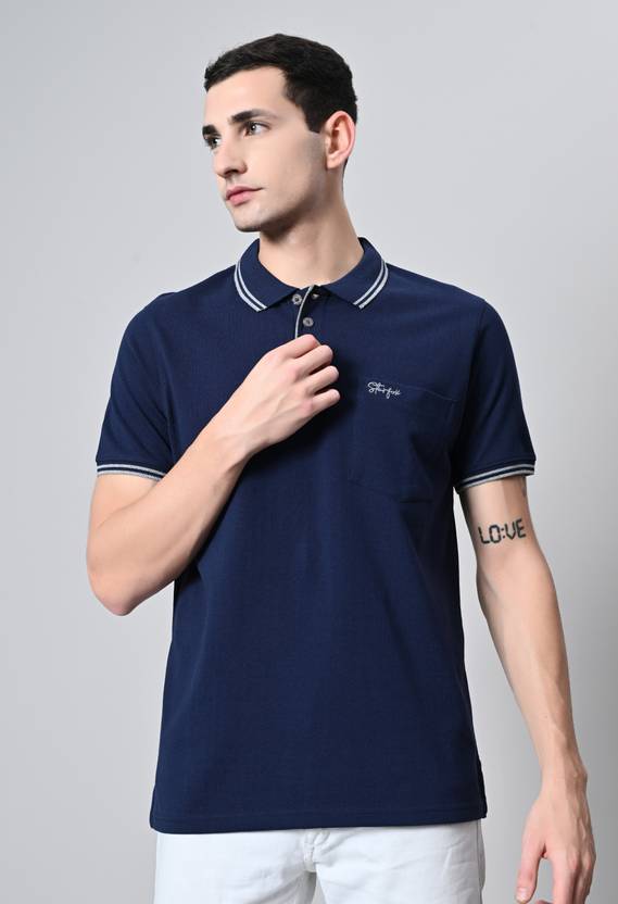 HouseOfCommon Solid Men Polo Neck Dark Blue T-Shirt