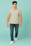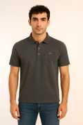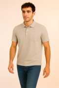 Men Solid Polo Neck Pure Cotton Grey T-Shirt