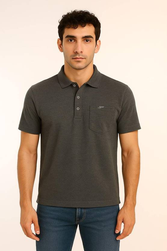 Star Fox Solid Men Polo Neck Grey T-Shirt