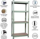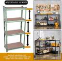 Star Work 4 SECTION (4'6"X 2'X 1' FT) METAL SHELVING ADJUSTABLE STORAGE RACK Iron, Wooden Wall Shelf (Number of Shelves - 4, Green)