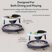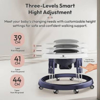 The walker includes multiple height adjustment options, allowing it to be set according to the baby’s comfort and stage of development. As the child grows, the height can be modified to maintain proper positioning. This adjustable design supports extended usability, allowing the walker to adapt to changing needs over time.