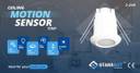 StarrBot New tiny Motion Sensor is smallest in size and it looks like spot light. It is ceiling flush mount fitting sensor. It is PIR motion sensor and it is ideal for your bathroom, lobby, passage area, corridor etc where POP ceiling is there. PIR or Passive Infrared motion sensors are designed to reliably detect people, large pets & other large warm moving objects. A motion sensor (or motion detector) is an electronic device that is designed to detect and measure movement. Motion sensors are used primarily in home and business security systems. Motion sensors do not work through glass. Benefits are, it is more Convenience, Energy Savings & Cost Savings. It consumes less energy (0.8W to 1.0W) compare to microwave sensor.