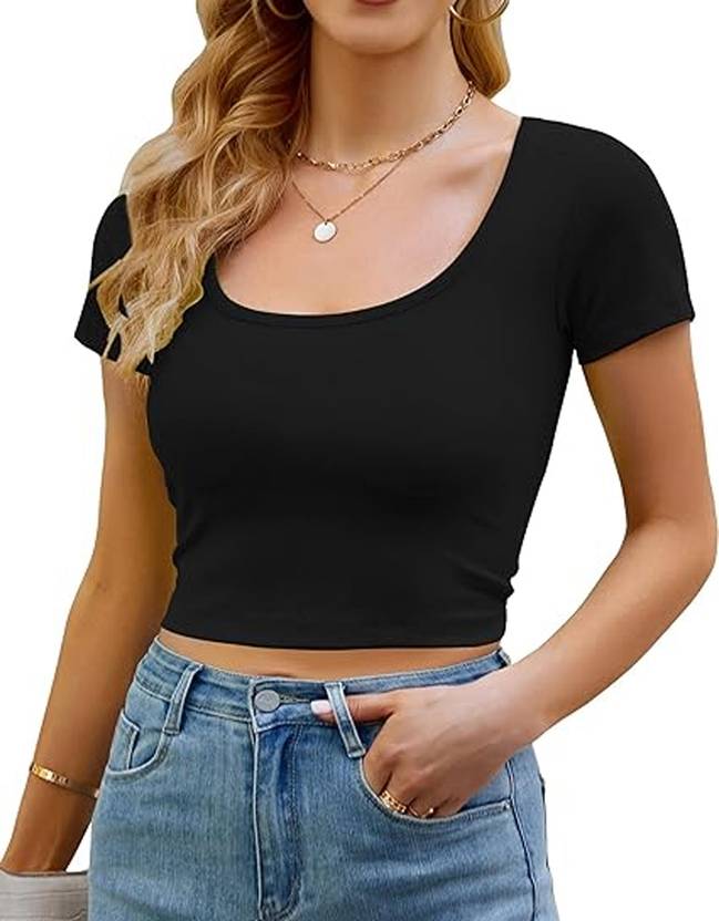 Features: Short sleeve, scoop neck, basic type, solid color, slim fitted, cropped length, casual basic crop tops for teen girls