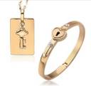 Heart Lock and Key Stainless Steel Gold Couple Bracelet Pendant Set for Lovers Men and Women