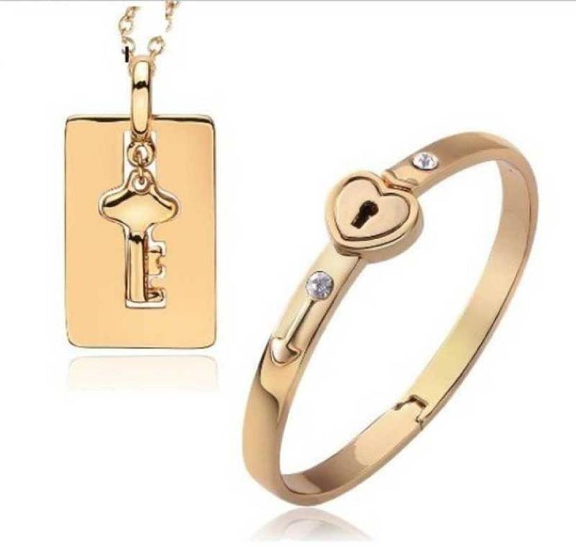 Lock and Key Necklace---Unique design with a lock bracelet and a square heart key necklace. Romantic matching couples jewelry symbolize that only this key will open up the heart lock. Suitable for daily wear or as a present to you and your lover. Highly polished couples jewelry offers an understated beauty combined with strength. This key and lock bracelet and necklace set is a perfect gift for couples because of its special features, pendant key is used to open bracelet lock which makes it a very romantic gift. This bracelet is made of highest quality imported 316L Stainless Steel. Special unique design bracelet is the heart of every girl. Only people who are destined can open it, romantic Valentine's Day gifts or special holiday gifts. This audacious combo of bracelet and pendant is surely gone a dictate a fashion. It is a perfect for your loved ones. Newest Technology is used which make these bracelets anti-fade and retains shine, anti-allergic. It is a perfect gift for women and men on special occasions like valentines, anniversary, friendship day, Birthday, Diwali and Christmas.