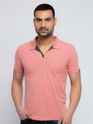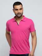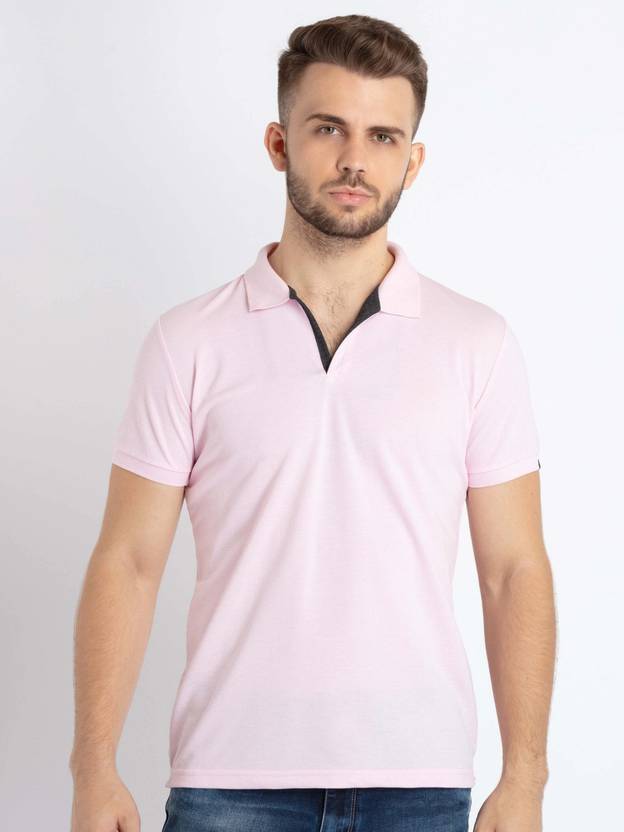 Status Quo Solid Men Polo Neck Pink T-Shirt
