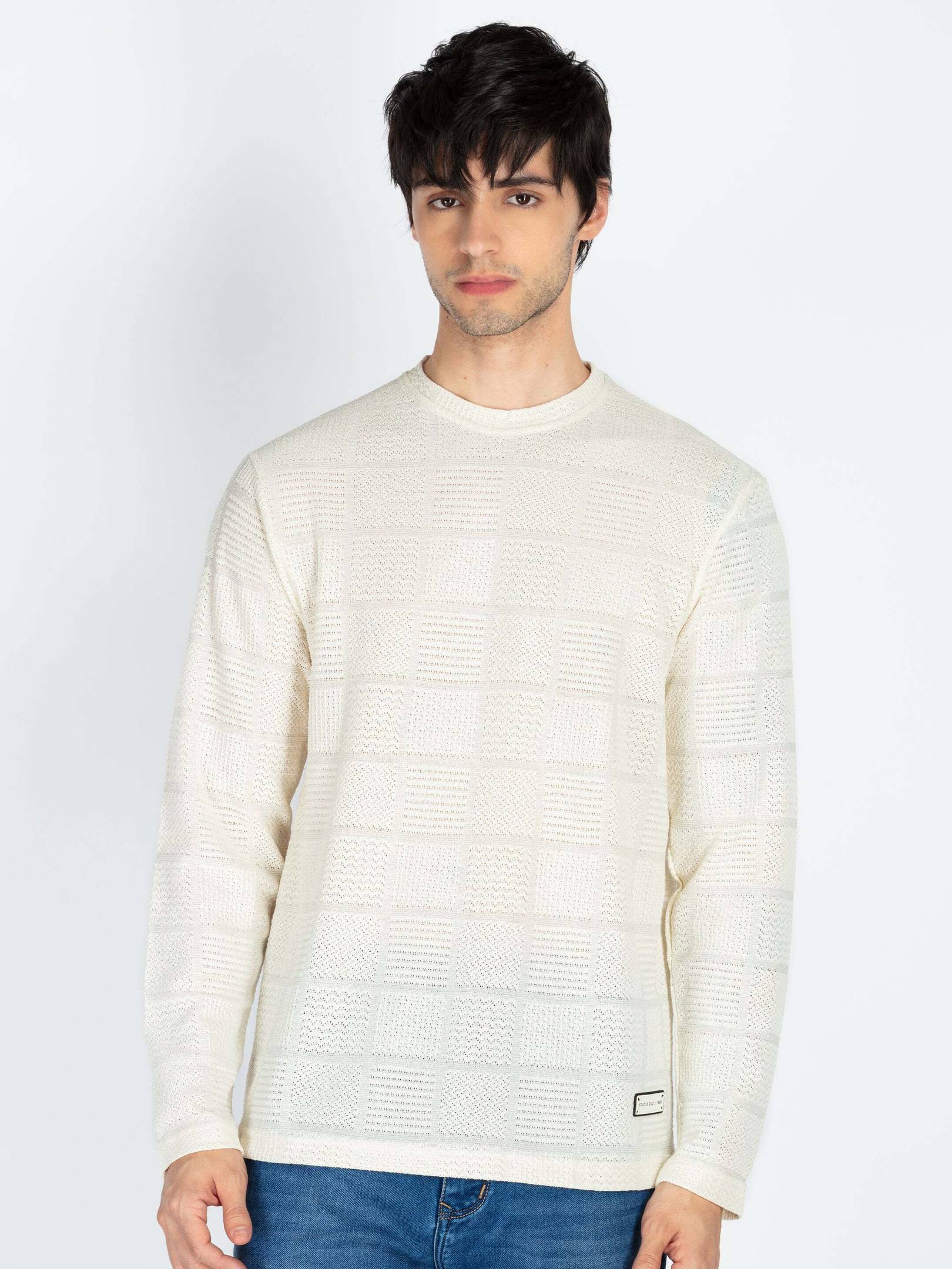 Status Quo Solid Men Round Neck White T-Shirt