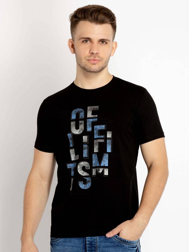 Men Typography Round Neck Cotton Blend Black T-Shirt