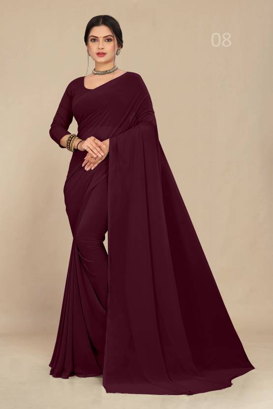 Solid/Plain Daily Wear Georgette Saree (Maroon)