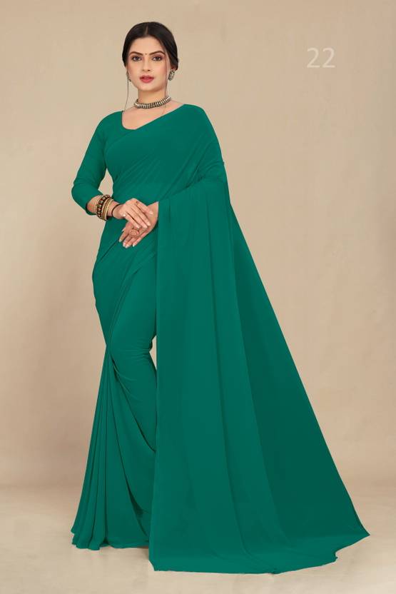 STAVA CREATION Solid/Plain Daily Wear Georgette Saree (Light Green)