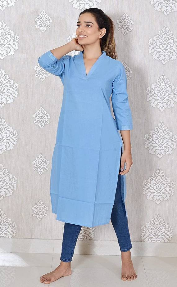 STAVA CREATION Solid/Plain Daily Wear Georgette Saree (Light Blue)