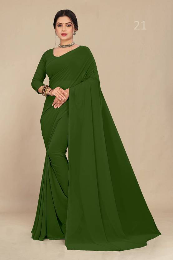 Neevam Creation Solid/Plain Daily Wear Georgette Saree (Green)