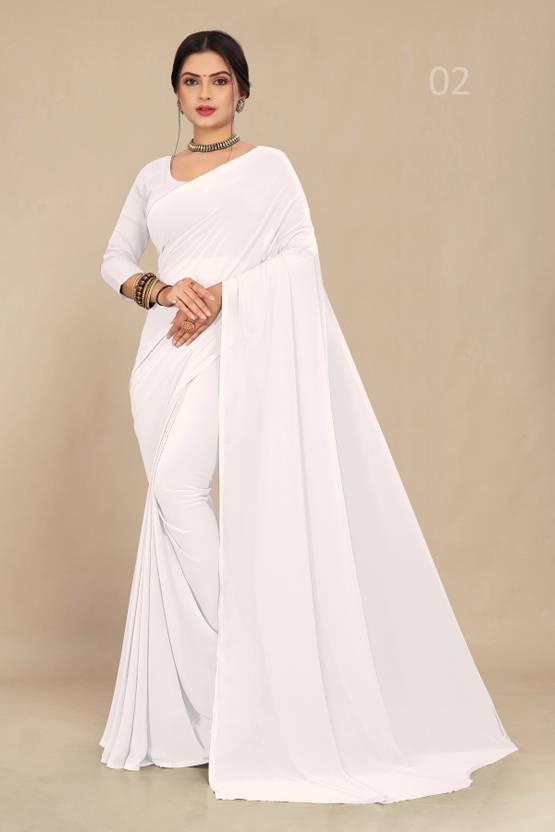 STAVA CREATION Solid/Plain Daily Wear Georgette Saree (White)