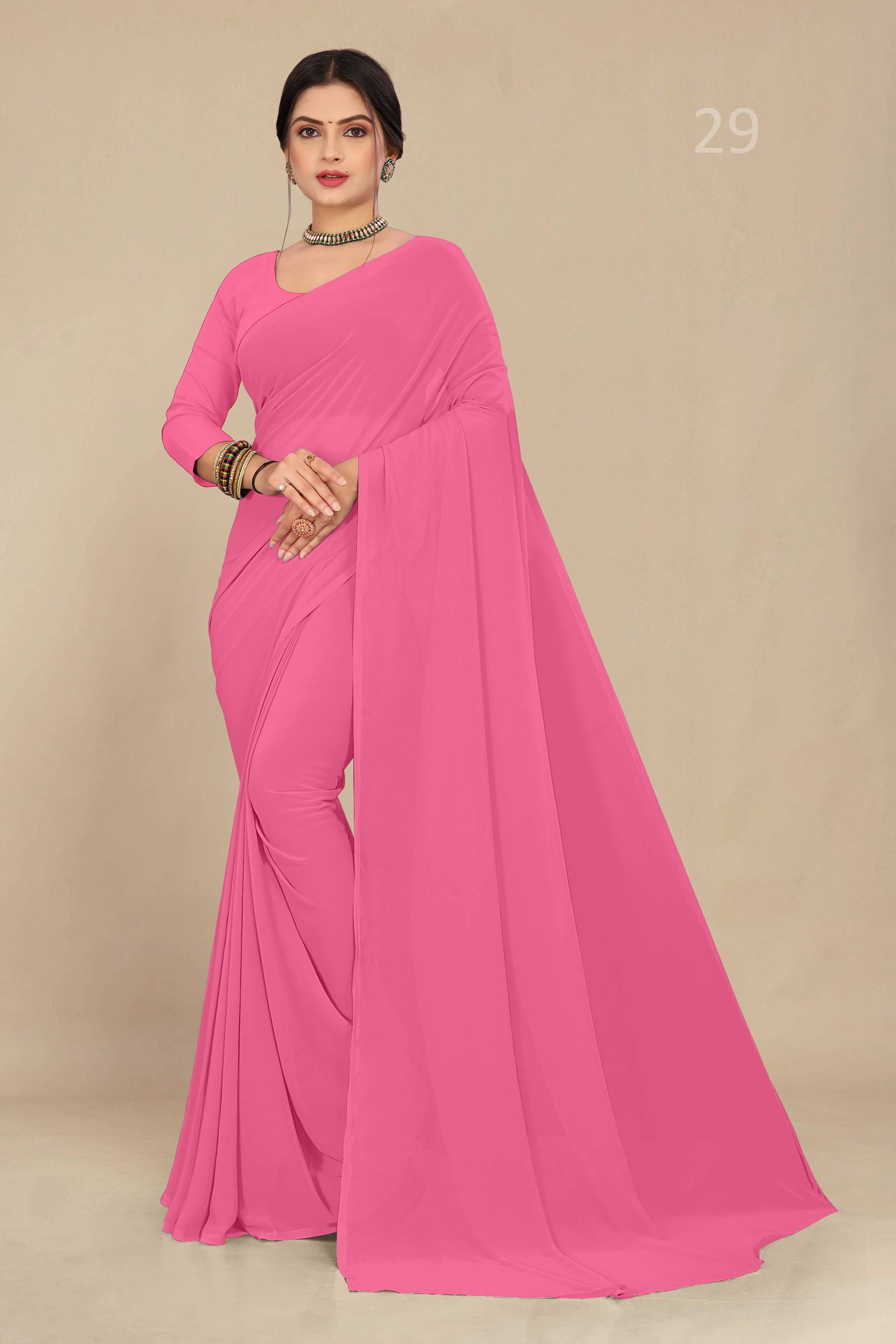 STAVA CREATION Solid/Plain Daily Wear Georgette Saree (Pink)