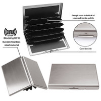 Courtesy of its enough room to hold all of your credit cards and IDs, this card holder ensures you never leave anything important behind. The card buckle secures your items, making sure they are always safe and in place. Made from durable stainless steel material, this card holder is built to withstand everyday wear and tear. You can fit all your essential cards in this compact holder without worrying about losing them.