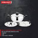 Steel Craft Premium 4 pcs Multi Kadai with Lid All Medium) -(Induction / Gas Stove Friendly) Induction & Standard Idli Maker (2 Plates , 13 Idlis )