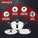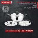 The package Includes: 1 Kadhai, 1 lid, 2 ldli Plates, Steelcraft is the brand you can trust when it comes to stainless steel. The name represents reliability, stability, and consistency. Made from high quality stainless steel, A multi-functional kadai is perfect for every home chef. You can steam your idlis or dhokla, make patra, deep fry or make mouth-watering curries with the kadai., The Steelcraft kadai keeps the health factor in check. Constructed with Heavy bottom includes an encapsulated layer of aluminium ensuring an even distribution of heat for optimal vaporization. The base layer is made from AISI 430 grade magnetic aluminium that makes the steamer both gas and induction friendly., This stainless steel multi pot with its assorted plate moulds is the ideal kitchen tool to prepare your favorite Indian delicacies.