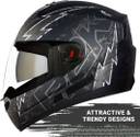 Steelbird Air SBA-1 R2K Live Double Visor Full Face Graphics Helmet, Inner Silver Sun Shield Motorbike Helmet (Matt Black Grey)