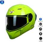 Steelbird Bluetooth Flip Up ISI Certified Helmet for Men with Inner Smoke Sun Shield Motorbike Helmet (Glossy Fluo Neon)