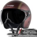 Steelbird SB-40 Dot Stripe Open Face Helmet in Matt Maroon Motorbike Helmet (Matt Maroon with Smoke Visor)