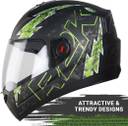 Steelbird SBA-1 R2K LIVE Motorbike Helmet (Matt Black Green with Clear Visor)