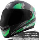Steelbird SBA-1 Sanchari Full Face ISI Certified Helmet Fitted Clear Visor and Extra Visor Motorbike Helmet (Matt Black Green with Visor)